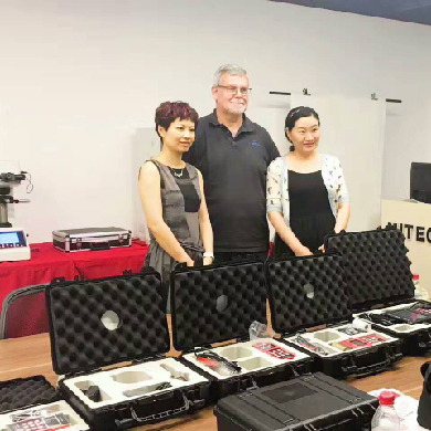 In the meeting room,the head and our managers had a pleasant meeting. Our engineer and manager demonstrated hardness tester,ultrasonic thickness gauge,surface roughness tester,coating thickness gauge and so on. The head had expressed great interest in our products,especially in our new updated portable hardness tester MT600, they said the thickness tester with colorful display and high accuracy, and the resolution can reach 0.001 stable and reliable ,and the latest updated products MH660 which can be connected with bluetooth printer is popular with clients. Also,the engineer had demonstrated the software of surface roughness tester MR200,our professional technical guidance won the customer's high praise.Besides,the coating thickness gauge MCT200 caught thehead's eyes,they were very satisfied with the two-point calibration unique function. At the end of the meeting,we showed our unique non-destructive testing flaw detector MFD550B which has function of recording the wave so as to analyze the results after testing. With professional guidance on the site,the head also can combine video on the website to provide technical guidance to their clients.