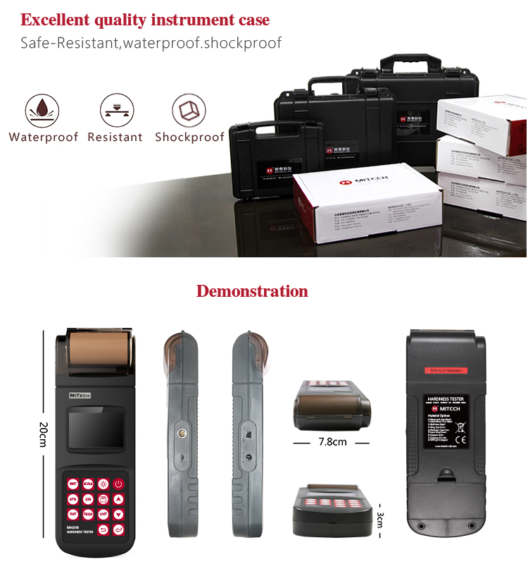 The instrument case of Mitech series portable leeb hardness,  length 35.5cm, width 19cm, height 11cm, weight of 1.5kg.