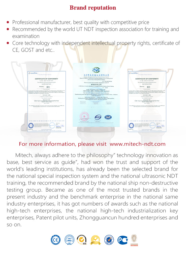 | Mitech Series portable leeb hardness testers with customized attached files including product certificate, warranty card, product manual, packing list. The attached files adopt the special printed paper. The manual is with graphic design, beautiful, easy to understand, easy to save for a long time. Note: The electronic version of Mitech attached files can be downloaded from m.pinopassport.com. |
