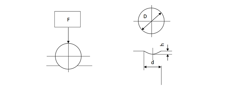 Brinell hardness test: Test force(F) is on the steel ball with certain diameter(D) , pressed on sample surface. After a period of time, cancel the force. The indentation diameter is get by measuring with  micrometer ocular,thus to calculate the average pressure(N/mm2).