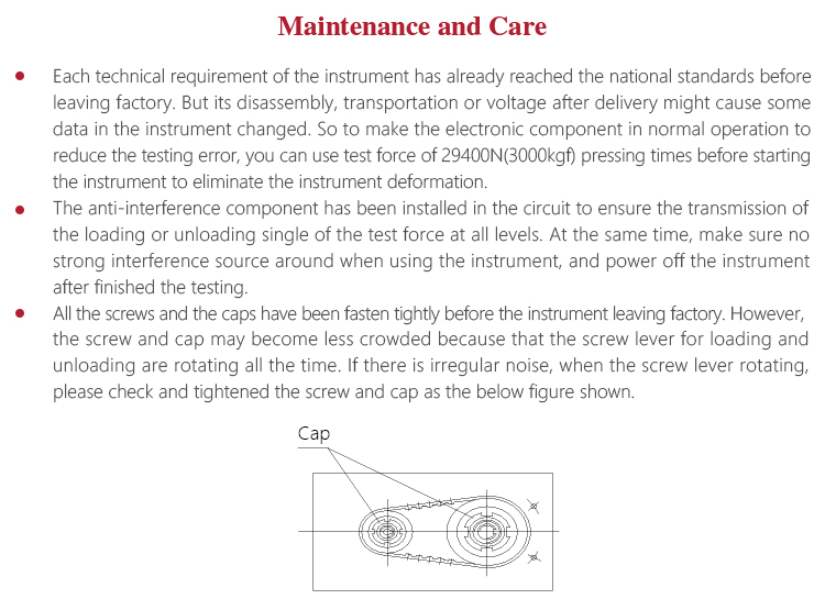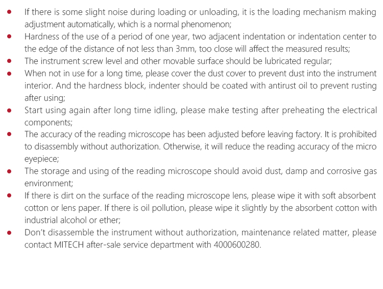 the hardness block, indenter should be coated with antirust oil to prevent rusting after using.
