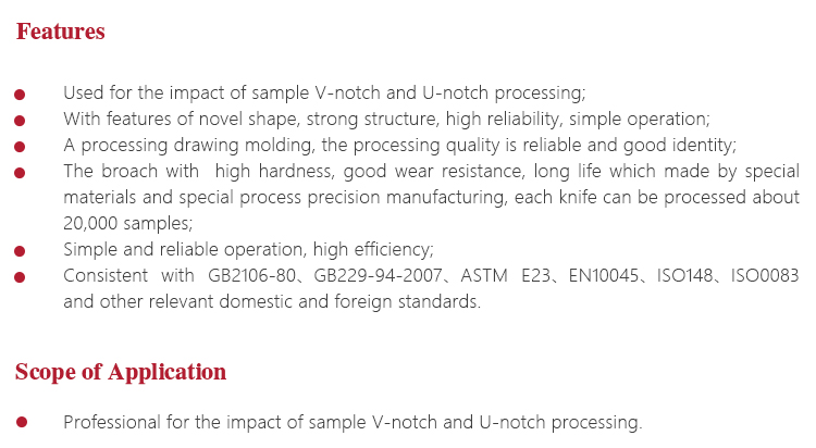 Instrument Featuresl Used for the impact of sample V-notch and U-notch processing;