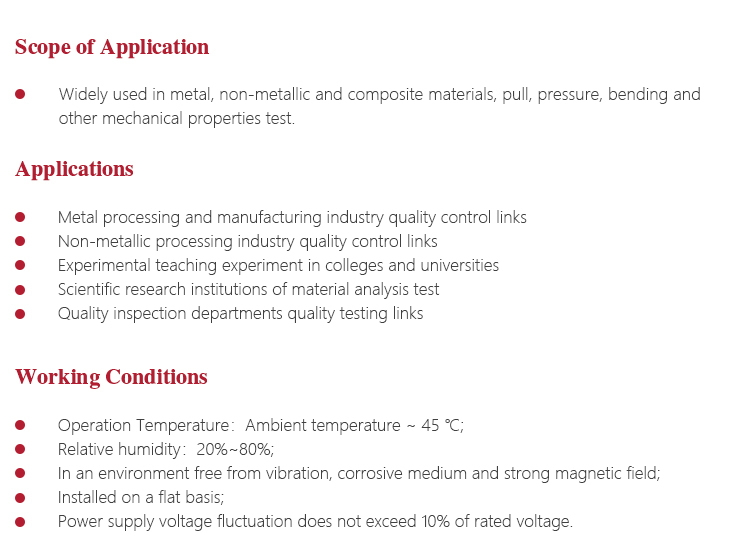 l Test machine is a large precision instruments, should pay attention to water, moisture. Exposed workstations, upper and lower beam parts and attached parts should be coated with anti-rust oil to prevent rust;