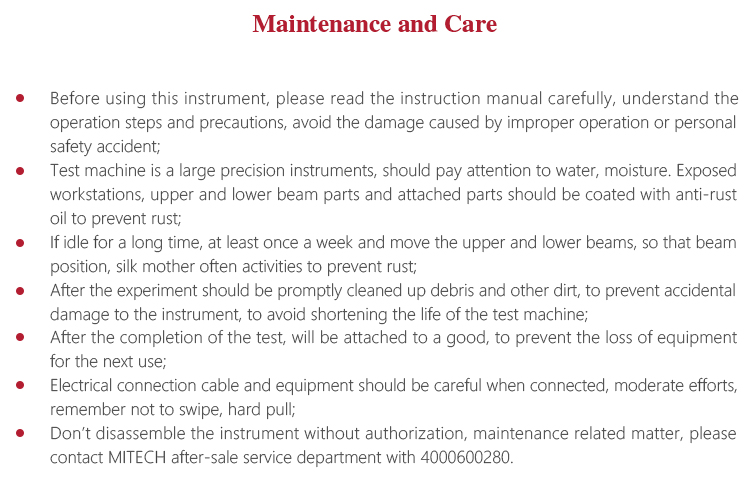 l Don’t disassemble the instrument without authorization, maintenance related matter, please contact MITECH after-sale service department with 4000600280.