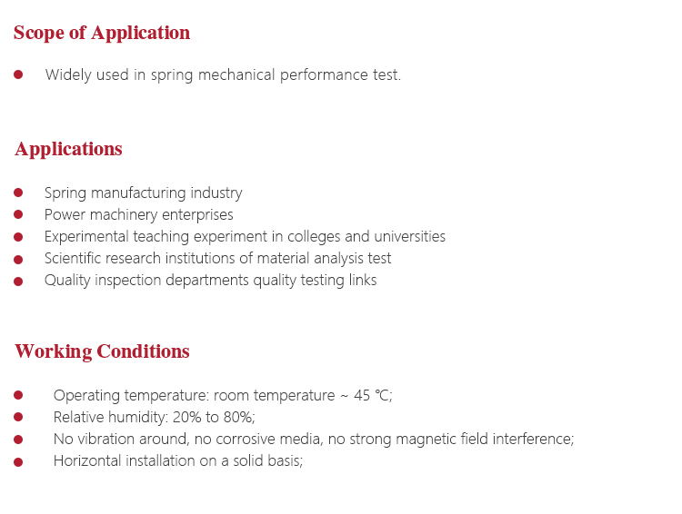 Instrument Featuresl Widely used in spring manufacturing, low-voltage electrical appliances, power machinery, institutions of higher learning and