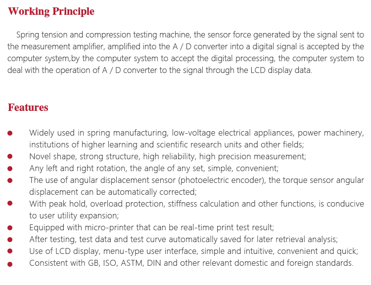 Widely used in spring mechanical performance test.