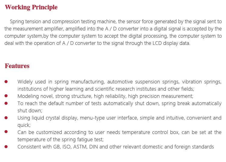 Widely used in spring mechanical performance test.