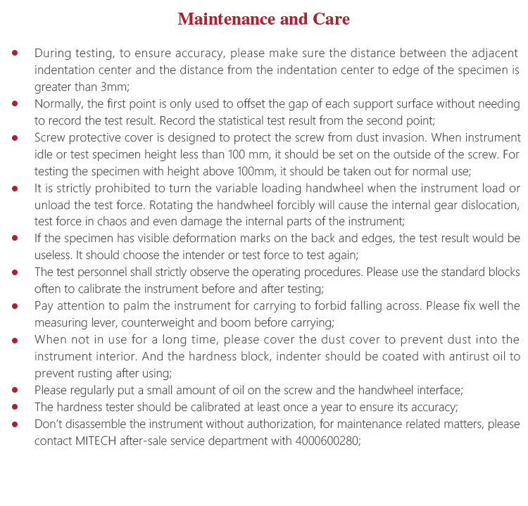 hardness block, indenter should be coated with antirust oil to prevent rusting after using.
