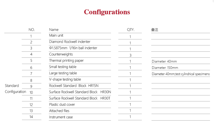 l Option for various specifications of the indenter, support many types of Rockwell hardness scales testing ;