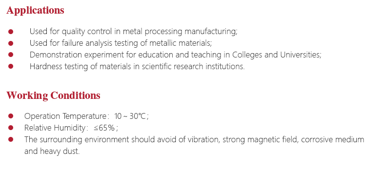 Instrument Featuresl Widely used for high-precision hardness testing for parts with a variety of metal and non-metallic materials;