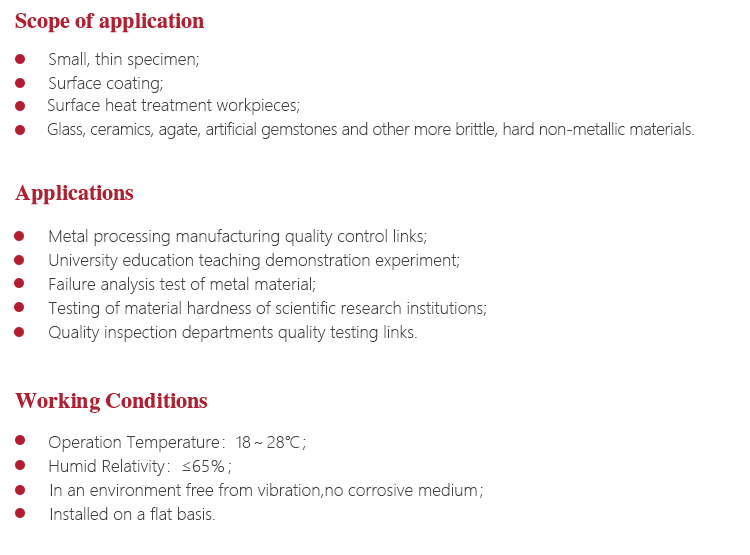 etc.Vickers hardness test to meet different demands of scientific research institutions, precision machining and quality