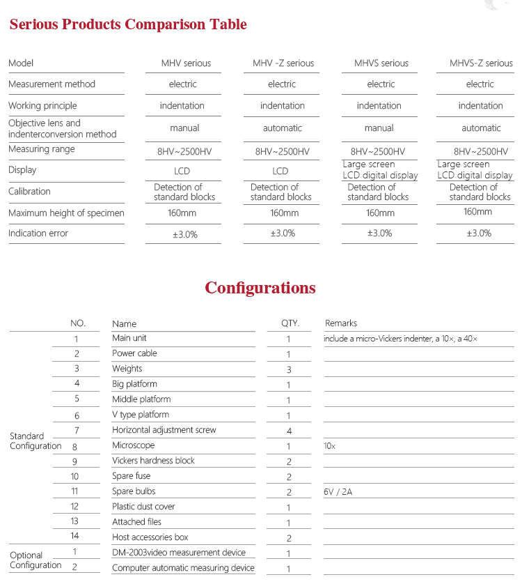 l With ISO 6507, ASTM E92, JIS Z2244, GB/T4340.2 and other relevant domestic and foreign standards.