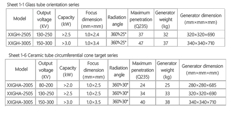 This series of X-ray generator adopts silicon controlled single-phase bridge rectifier, rectified voltage changed into DC voltage through LC filter circuit. This voltage converted into a unidirectional pulse with a variable frequency by thyristor chopper circuit, the sent into high-voltage pulse transformer for power supply to the X ray generator. This voltage of tens KV even hundred KV is added in X ray tube (a two staged tube) at both ends, electrons from the cathode to anode direction to accelerate and get a great amount of energy. when the high-speed electrons strike the anode, and by interacting with the anode metal atoms outside the nuclear Coulomb field, emit X rays.
