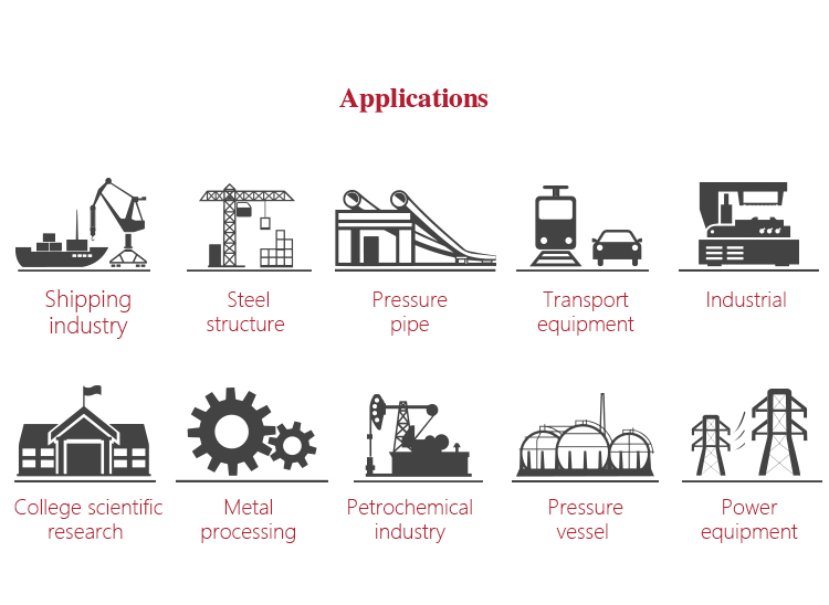 Function & applicationThe instrument can be widely used in locating and sizing hidden cracks, voids, disbands and similar discontinuities in welds, forgings, billets, axles, shafts, tanks, pressure vessels, turbines and structural components.