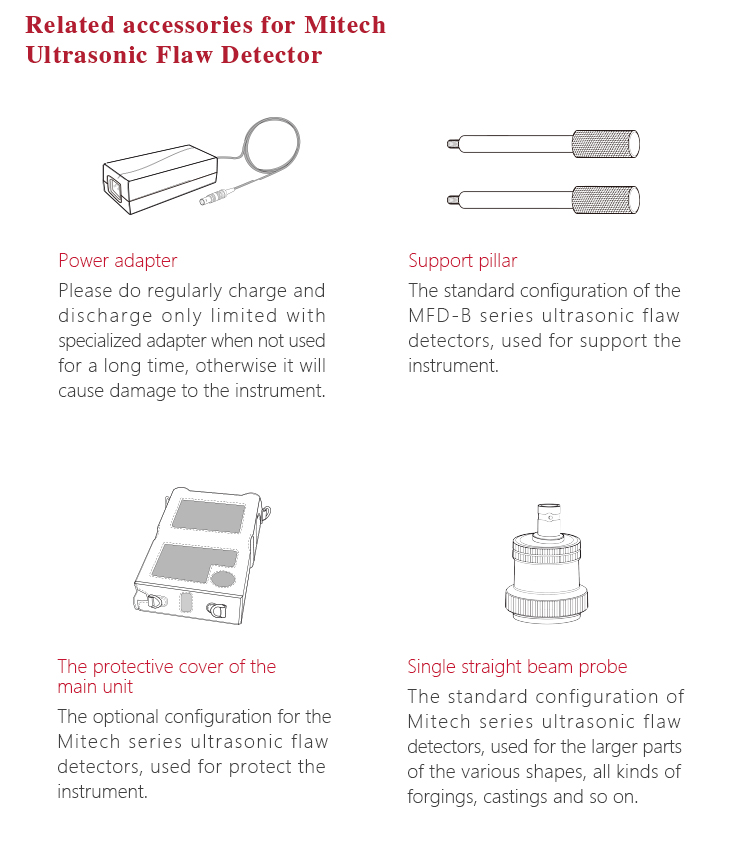 | The battery for B series ultrasonic flaw detector is the rechargeable Li-ion battery pack rated 7.2V at 8800 mAh, which belongs to the standard configuration for Mitech B series ultrasonic flaw detectors. During using, please don’t disassemble the battery pack by yourself and use only with our special power adaptor for charging. Otherwise, it will cause damage to the battery and instrument. If it’s not used for a long time, make sure to do regularly charging and discharging about one time per month to avoid failure. | |
