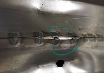 再次進(jìn)行檢測(cè)試驗(yàn),焊接后焊接情況良好與熔和直徑過小對(duì)比,其中檢測(cè)焊點(diǎn)數(shù)值較低, 做好標(biāo)記后對(duì)焊點(diǎn)進(jìn)行破壞,打開后明顯看到焊點(diǎn)處連接較少,測(cè)得熔深直徑為4-5mm,不滿足技術(shù)要求。隨后我們對(duì)其他焊點(diǎn)破壞,明顯可以看到測(cè)得數(shù)值正常的焊點(diǎn)焊接情況良好,測(cè)得熔深直徑為7-8mm。最后確定這一方法可以檢測(cè)工件焊點(diǎn)熔深直徑。