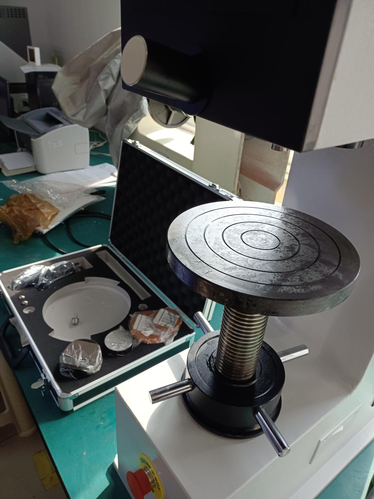 美泰MHBS-3000Z配備了三個測量載臺以適配不同大小、不同形狀工件的測量。工程師詳細(xì)講解了如何對儀器進(jìn)行校零,測量以及打印。首先把工件放在平臺上,通過手動旋轉(zhuǎn)把工件提高到最接近壓頭的位置。點擊啟動按鈕,儀器會自動運行加荷,保荷和卸荷,卸荷完成后,塔臺自動轉(zhuǎn)動,將測量物鏡轉(zhuǎn)到待測壓痕正上方,通過測量目鏡測量出壓痕直徑,D1\D2,點擊測量按鈕,儀器自動測量出被測工件的布氏硬度,并自動轉(zhuǎn)化出所對應(yīng)的洛氏、維氏等硬度值。