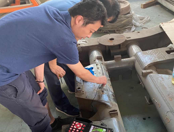 2020年8月26日,北京美泰科儀協(xié)同北京某大學教授一起來到北京某地鐵運營公司進行現(xiàn)場探傷試驗,為地鐵的無損檢測工作設(shè)計實施方案。目前在役地鐵要求每滿5年進行一次全面維檢,主要檢測部件是地鐵轉(zhuǎn)向架等關(guān)鍵部件,檢測部位有轉(zhuǎn)向架與電機、減速箱連接處板材的焊縫等?,F(xiàn)有檢測手段是將相關(guān)配件從裝向架上拆除后,對轉(zhuǎn)向架進行脫漆處理,然后用磁粉探傷儀對焊縫進行探傷。由于當前檢測手段只能對焊縫表面進行檢測,特邀請美泰技術(shù)工程師協(xié)助現(xiàn)場演示并探討超聲波探傷儀對焊縫檢測的具體方案。