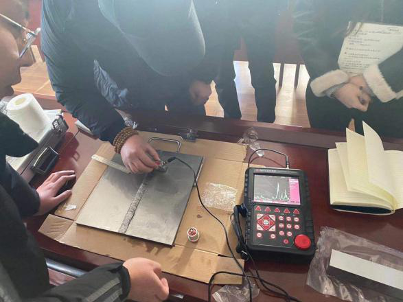 美泰工程師首先為現(xiàn)場(chǎng)技術(shù)人員詳細(xì)講解了設(shè)備的功能作用、工作原理、操作使用、相關(guān)配置說(shuō)明、維保注意事項(xiàng)等,普及理論知識(shí)和檢測(cè)常識(shí)后,現(xiàn)場(chǎng)指導(dǎo)使用人員的實(shí)際上手操作。美泰超聲波探傷儀MUT550B,人性化設(shè)計(jì)輕松操作,設(shè)有細(xì)致入微的步驟操作提示功能,僅需要做出是與否的簡(jiǎn)單判斷,即可根據(jù)每一步提示,完成復(fù)雜的調(diào)校,綜合閘門(mén)自動(dòng)報(bào)警等功能,真正實(shí)現(xiàn)“傻瓜式”無(wú)漏檢探傷,是初學(xué)者的明智之選。