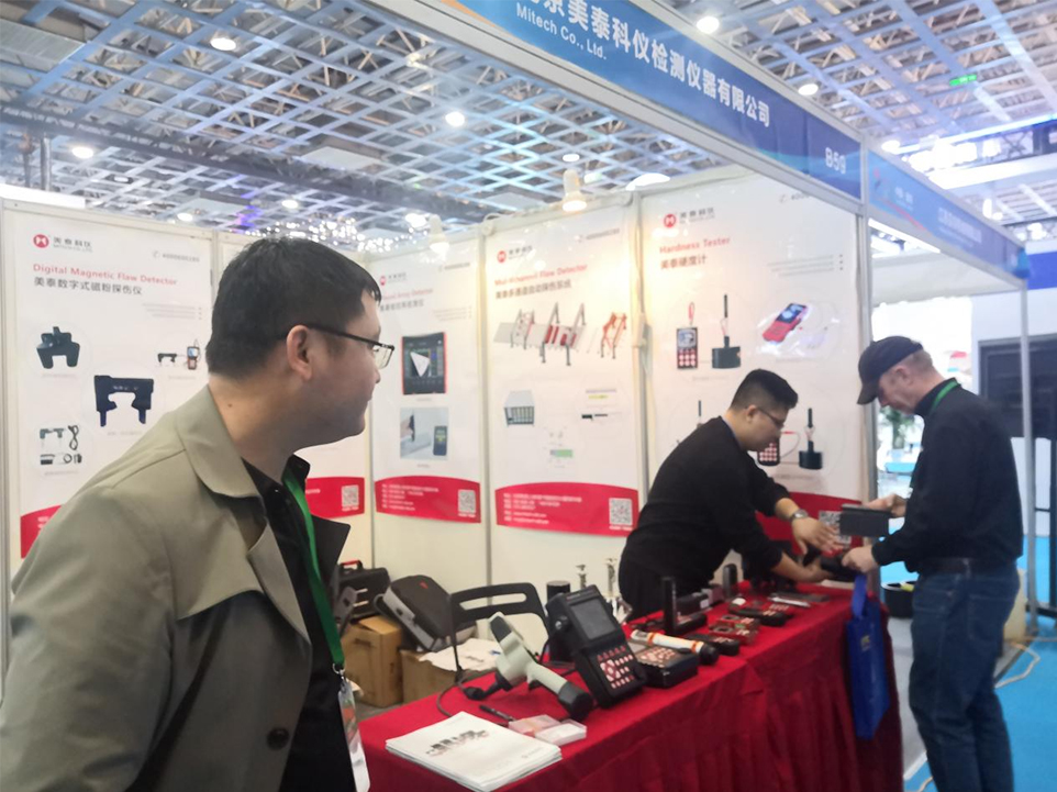 北京美泰科儀受邀參展,展臺置于廊坊國際會展中心B館的59號,展出的產(chǎn)品有系列化超聲波探傷儀、磁粉探傷儀、超聲波測厚儀、里式硬度計、超聲波硬度計、粗糙度儀、電磁超聲測厚儀(高溫)、工業(yè)內(nèi)窺鏡等無損檢測先進設(shè)備,吸引了與會嘉賓、海內(nèi)外用戶、科研學(xué)者的高度關(guān)注。