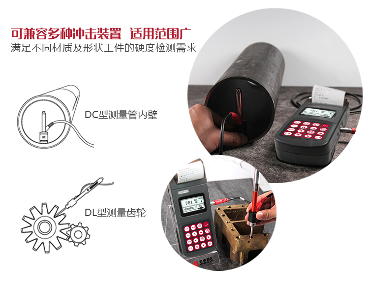 | 美泰便攜式里氏硬度計(jì)DL型沖擊裝置,高: 204 mm 重:50g 直徑:20mm,內(nèi)置DL沖擊體,前方為細(xì)長的裝置,適用于重量在5kg以上,厚度5mm以上,表面較光滑的狹小部位(孔內(nèi)、窄縫中)的工件硬度的測量。被廣泛的應(yīng)用于:已安裝的機(jī)械或永久性組裝的狹小部件;大型工件大范圍內(nèi)多處測量部位的快速檢驗(yàn);齒輪齒根等細(xì)長窄槽或孔內(nèi)??蓪?shí)現(xiàn)里氏、布氏、洛氏等硬度的精確測量。 | |