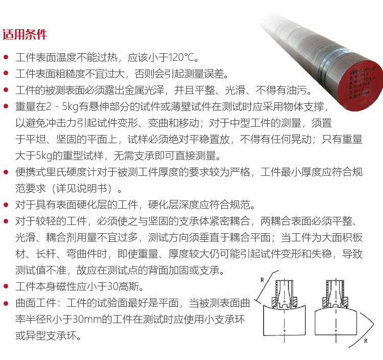 工作原理里氏硬度:規(guī)定質(zhì)量的沖擊體在彈力作用下,以一定速度沖擊試樣表面并回彈,用沖擊體在距試樣表面1mm處的回彈速度與沖擊速度的比值計(jì)算硬度