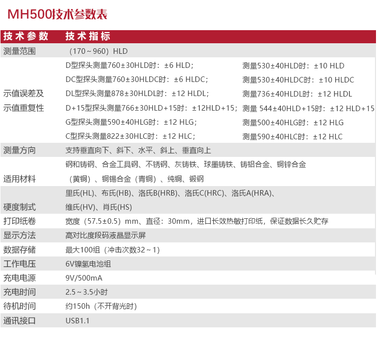 | 單位制式 | 里氏(HL)、布氏(HB)、洛氏B(HRB)、洛氏C(HRC)、洛氏A(HRA)、維氏(HV)、肖氏(HS) |