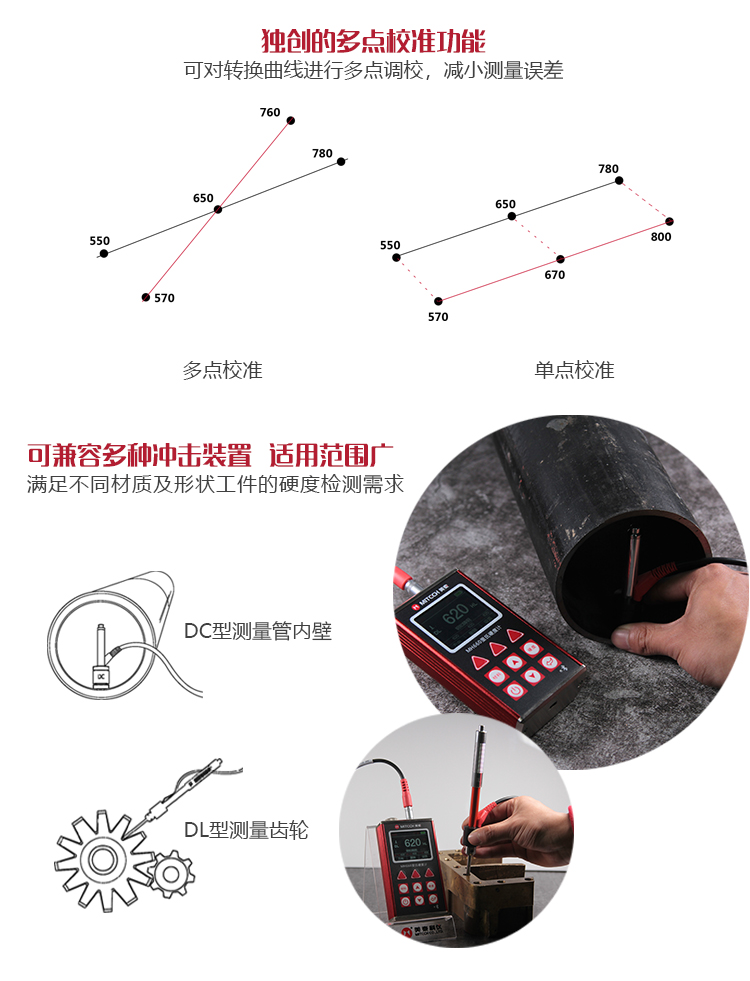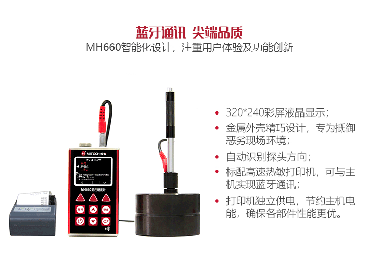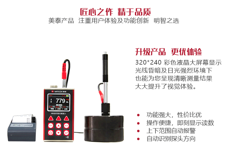 產(chǎn)品概述MH660便攜式里氏硬度計是美泰公司新推出的升級產(chǎn)品,它更加注重用戶體驗及功能創(chuàng)新。采用320×240彩色液晶顯示屏,光線昏暗及日光強烈環(huán)境下也能為您呈現(xiàn)清晰測量結(jié)果,大大提升了視覺體驗;密封的金屬外殼精巧設(shè)計,體積更小、品質(zhì)更優(yōu),專為抵御惡劣現(xiàn)場環(huán)境中的油污、粉塵而設(shè)計;獨創(chuàng)的多點校準功能,可對轉(zhuǎn)換曲線進行多點調(diào)校,減小測量誤差;測量中儀器可自動識別測量方向,滿足高效采集多角度材料硬度的精準檢測需求,支持多種硬度制氏間的自由轉(zhuǎn)換;低功耗設(shè)計由兩節(jié)AA五號電池供電,可實現(xiàn)藍牙通訊,支持多語言版本切換。被廣泛地應用于金屬加工制造業(yè)、特種設(shè)備或永久性組件的在役失效分析、商檢等領(lǐng)域。特別適宜對大型不可拆卸部件的現(xiàn)場硬度測試。是提高生產(chǎn)合格率、節(jié)約成本必備的專業(yè)精密儀器。