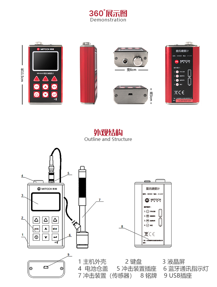 儀器特點基于里氏硬度測量原理,可對多種金屬材料進行硬度和強度測試。