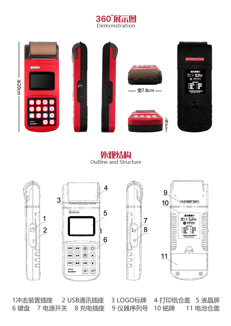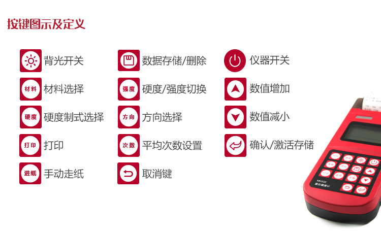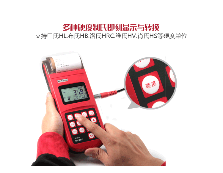 | 單位制式 | 里氏(HL)、布氏(HB)、洛氏B(HRB)、洛氏C(HRC)、洛氏A(HRA)、維氏(HV)、肖氏(HS) |