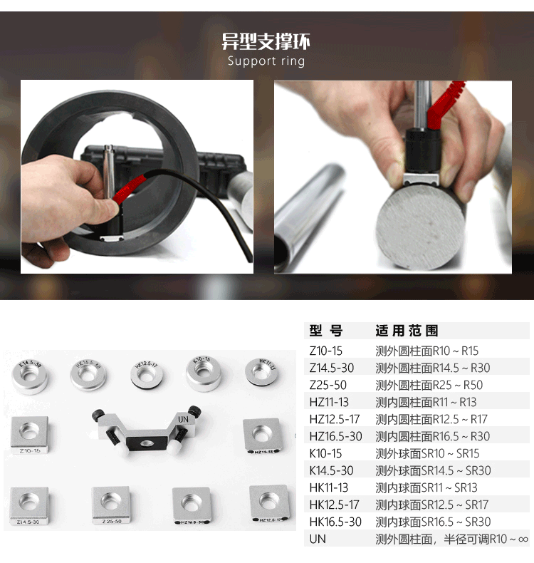 | 美泰硬度計異型支承環(huán)HZ11-13,適用于R11-13 內(nèi)圓柱面的檢測,可替代標(biāo)準(zhǔn)支撐環(huán)使用。 | |