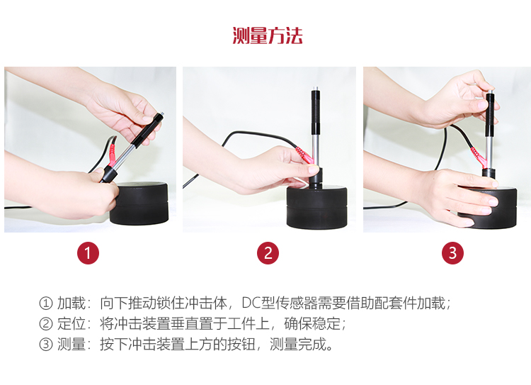 向下推動(dòng)加載套鎖住沖擊體;對于DC型沖擊裝置,則可將加載桿吸于試驗(yàn)表面,將DC型沖擊裝置插入加載桿,直到停止位置為止,此時(shí)就