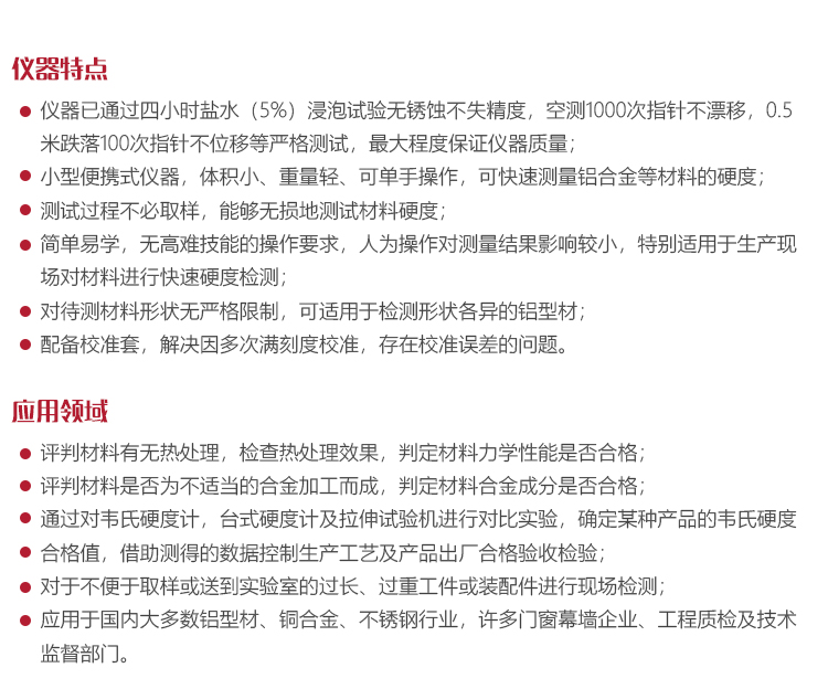 小型便攜式儀器,體積小、重量輕、可單手操作,可快速測(cè)量鋁合金等材料的硬度;