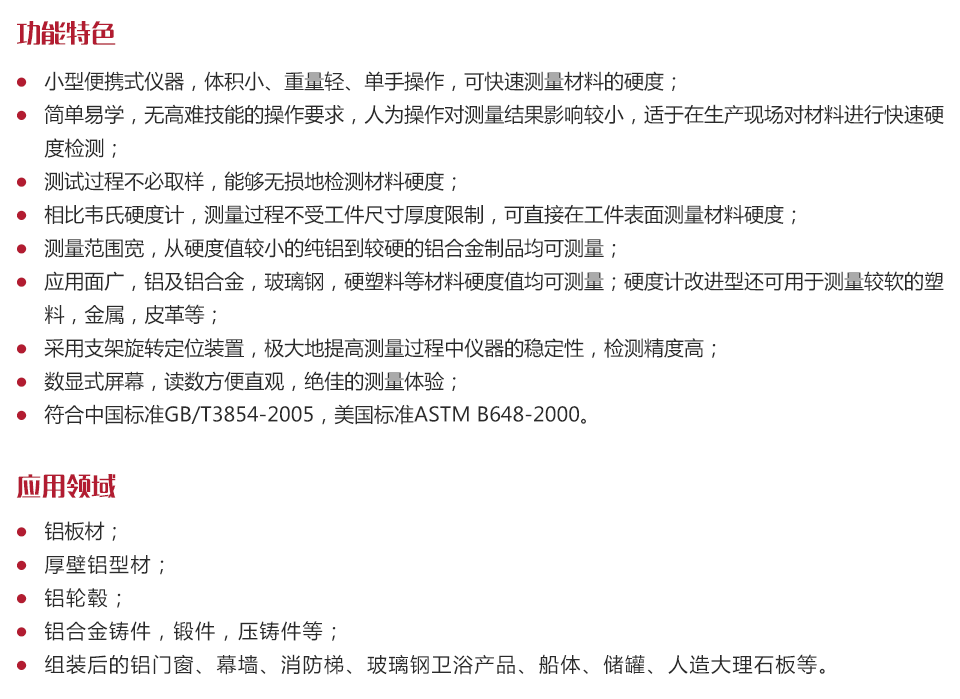 應(yīng)用面廣,鋁及鋁合金,玻璃鋼,硬塑料等材料硬度值均可測量;硬度計改進(jìn)型還可用于測量較軟的塑料,金屬,皮革等;
