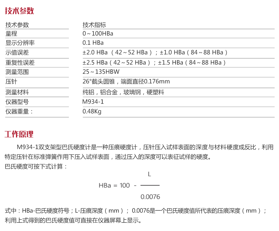| 測量范圍 | 25~135HBW |