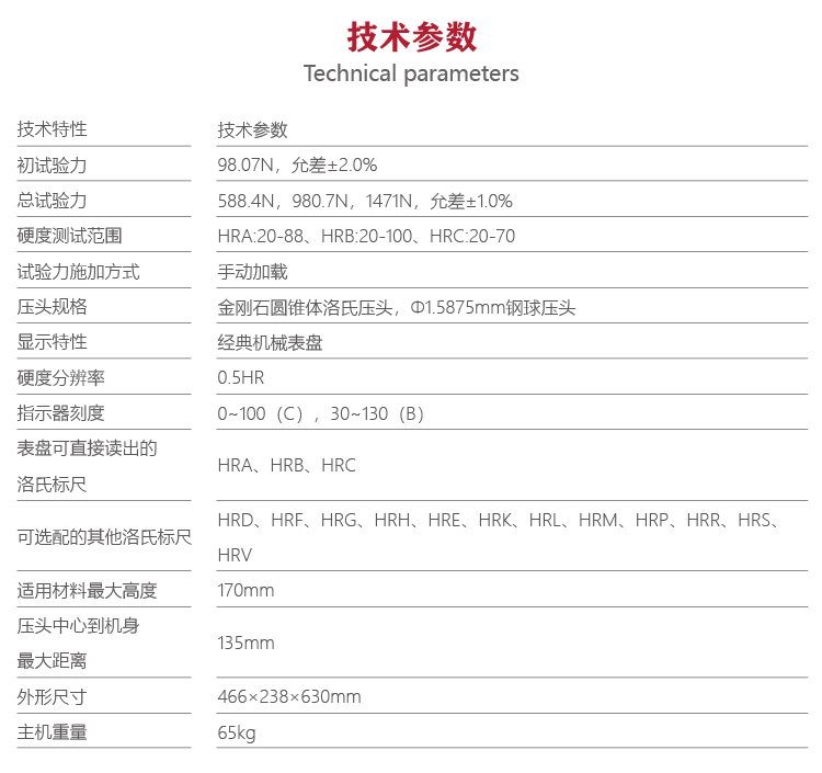 | 壓頭規(guī)格 | 金剛石圓錐體洛氏壓頭,Φ1.5875mm硬質(zhì)合金鋼球壓頭 |