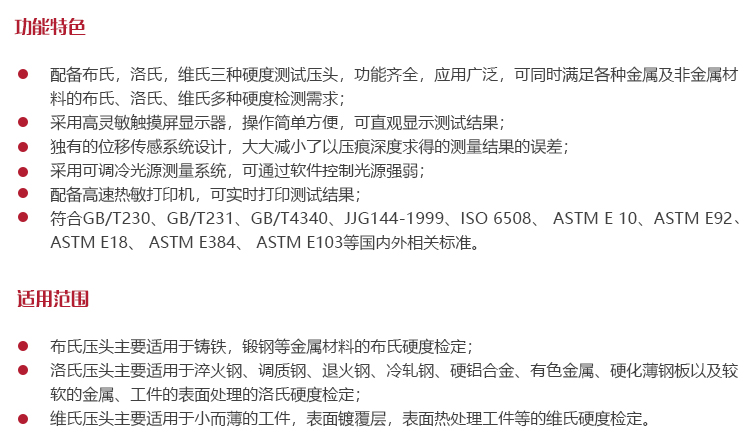 ?符合GB/T230、GB/T231、GB/T4340、JJG144-1999、ISO 6508、 ASTM E 10、 ASTM E92、ASTM E18、 ASTM E384、 ASTM E103等國內(nèi)外相關(guān)標(biāo)準(zhǔn)。