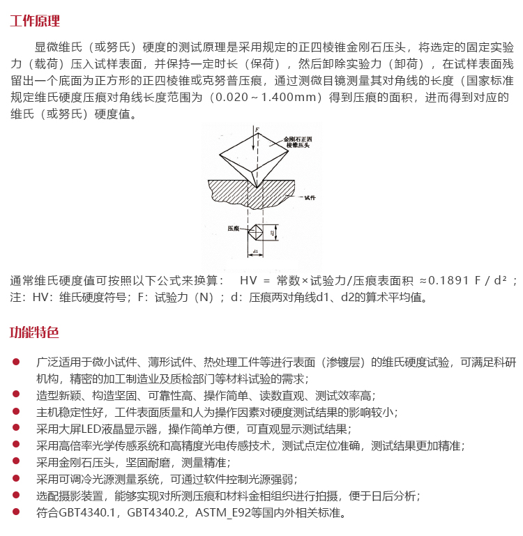 符合GBT4340.1,GBT4340.2,ASTM_E92等國內(nèi)外相關(guān)標(biāo)準(zhǔn)。