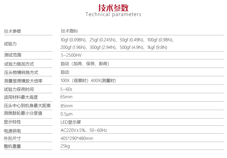 | 試驗力 | 10gf (0.098N)、25gf (0.245N)、50gf (0.49N)、100gf (0.98N)、 200gf (1.96N)、300gf (2.94N)、500gf (4.9N)、1kg |