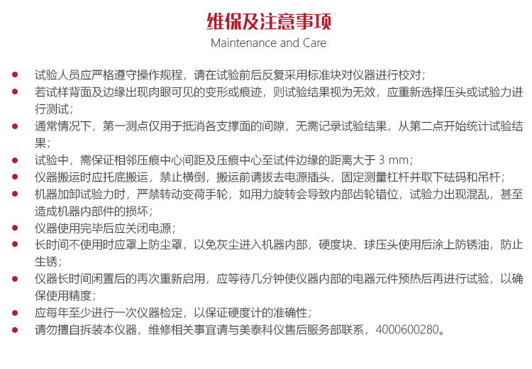 儀器的保養(yǎng)與維護(hù)?試驗(yàn)人員應(yīng)嚴(yán)格遵守操作規(guī)程,請?jiān)谠囼?yàn)前后反復(fù)采用標(biāo)準(zhǔn)塊對儀器進(jìn)行校對;