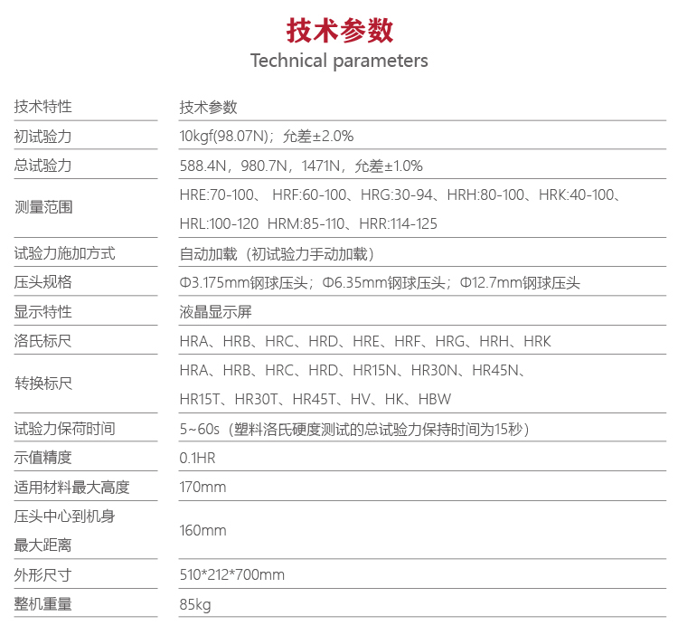 | 初試驗(yàn)力 | 10kgf(98.07N);允差±2.0% |