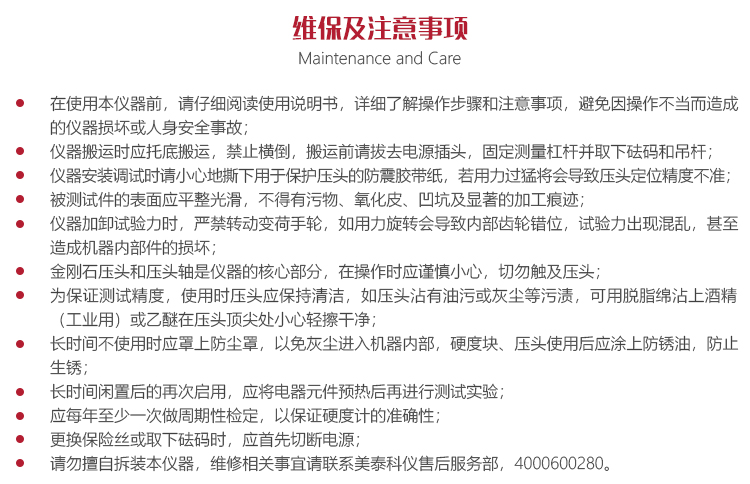 長時間不使用時應(yīng)罩上防塵罩,以免灰塵進入機器內(nèi)部,硬度塊、壓頭使用后應(yīng)涂上防銹油,防止生銹;