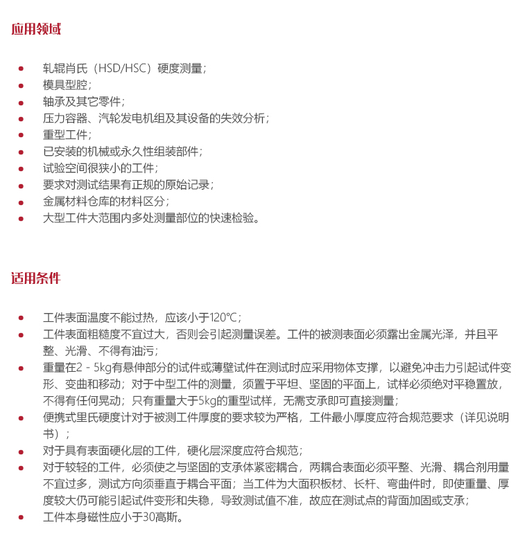 l 便攜式里氏硬度計對于被測工件厚度的要求較為嚴(yán)格,工件最小厚度應(yīng)符合規(guī)范要求(詳見說明書)。