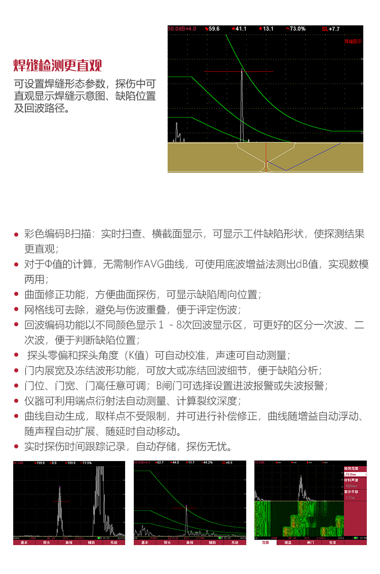 | 缺陷定性 | 通過回波包絡(luò)波形,方便人工經(jīng)驗(yàn)判斷 |