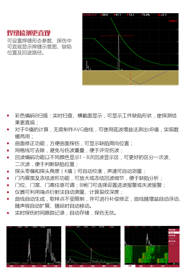 | 定位 | 實(shí)時(shí)顯示缺陷水平、深度(垂直)、聲程位置 |