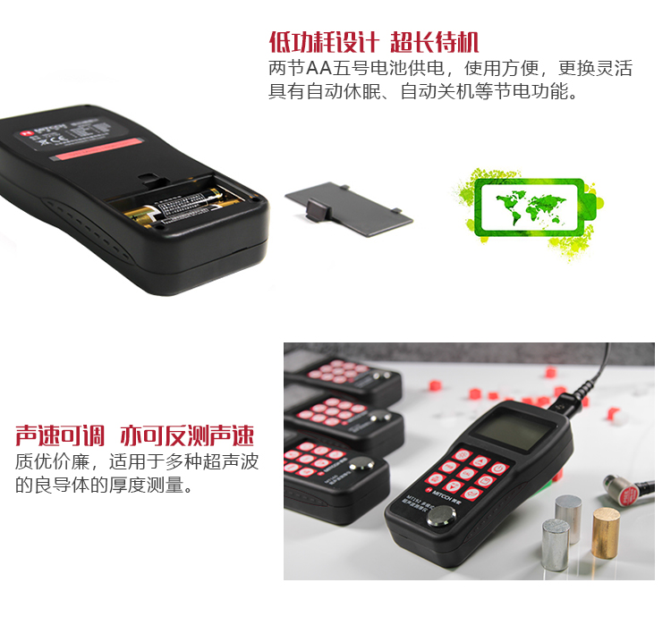| 美泰系列超聲波測厚儀,均采用低功耗設(shè)計(jì)理念,超長待機(jī),MT150/MT160/MT200/MT180/MT192/MT280/MT600/MT660均由兩節(jié)AA五號電池供電、更換方便。 | |
