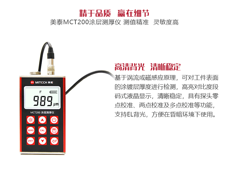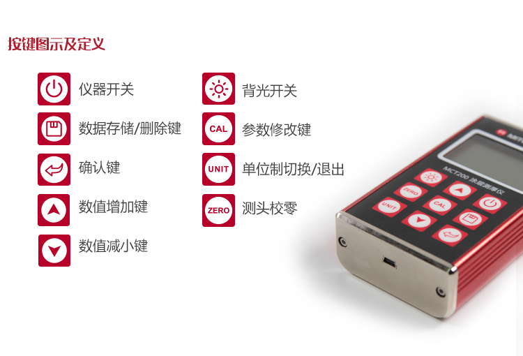 產(chǎn)品概述MCT200 涂(鍍)層測(cè)厚儀能夠快捷、無(wú)損傷、精密地進(jìn)行涂層(如油漆、防腐層)、鍍層厚度的測(cè)量,亦可進(jìn)行薄膜厚度測(cè)量。廣泛地應(yīng)用于制造業(yè)、金屬加工業(yè)、化工業(yè)、商檢等檢測(cè)領(lǐng)域。0-10毫米的檢測(cè)范圍,可滿足不同行業(yè)針對(duì)工件表面涂鍍層厚度的檢測(cè)需求。是提高生產(chǎn)效率與合格率、節(jié)約生產(chǎn)成本必備的專業(yè)精密儀器