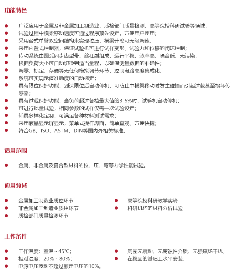 采用臺式單臂雙空間結(jié)構(gòu)來實(shí)現(xiàn)拉壓,橫梁升降可無級調(diào)速;