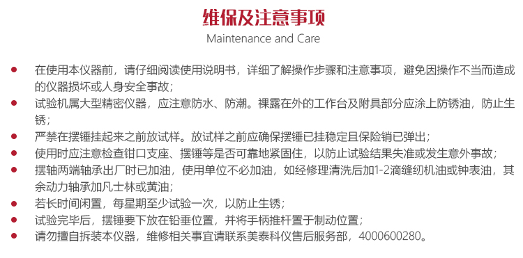 使用時應(yīng)注意檢查鉗口支座、擺錘等是否可靠地緊固住,以防止試驗(yàn)結(jié)果失準(zhǔn)或發(fā)生意外事故;