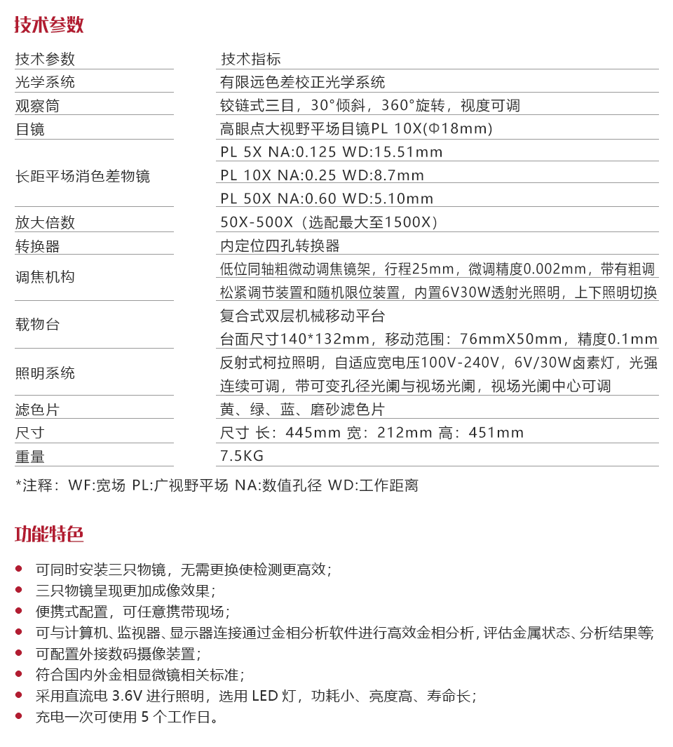 | 照明系統(tǒng) | 反射式柯拉照明,自適應寬電壓100V-240V,6V/30W鹵素燈, 光強連續(xù)可調,帶可變孔徑光闌與視場光闌,視場光闌中心可調 |
